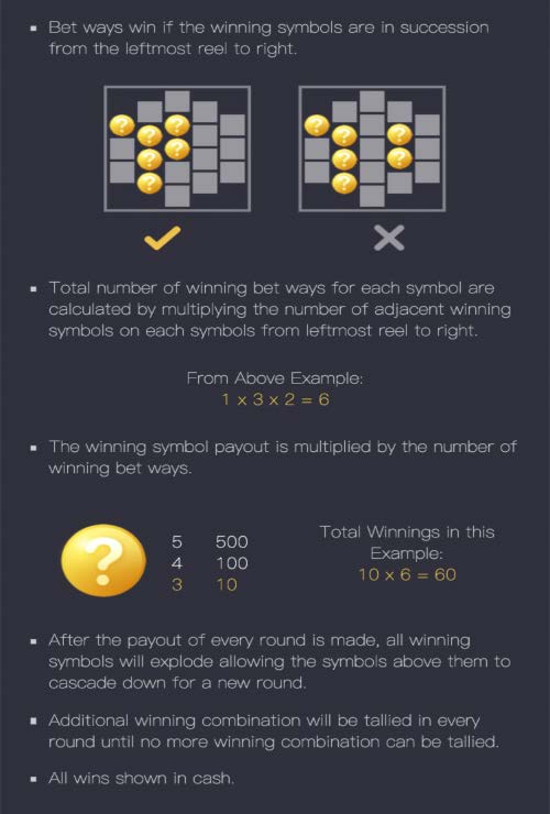 In Heist Stakes, whenever a Wild symbol lands on reel 3, it transforms all symbols on the reel into Wilds. Following each win, these Wilds cascade down reel 3, potentially triggering more wins.
