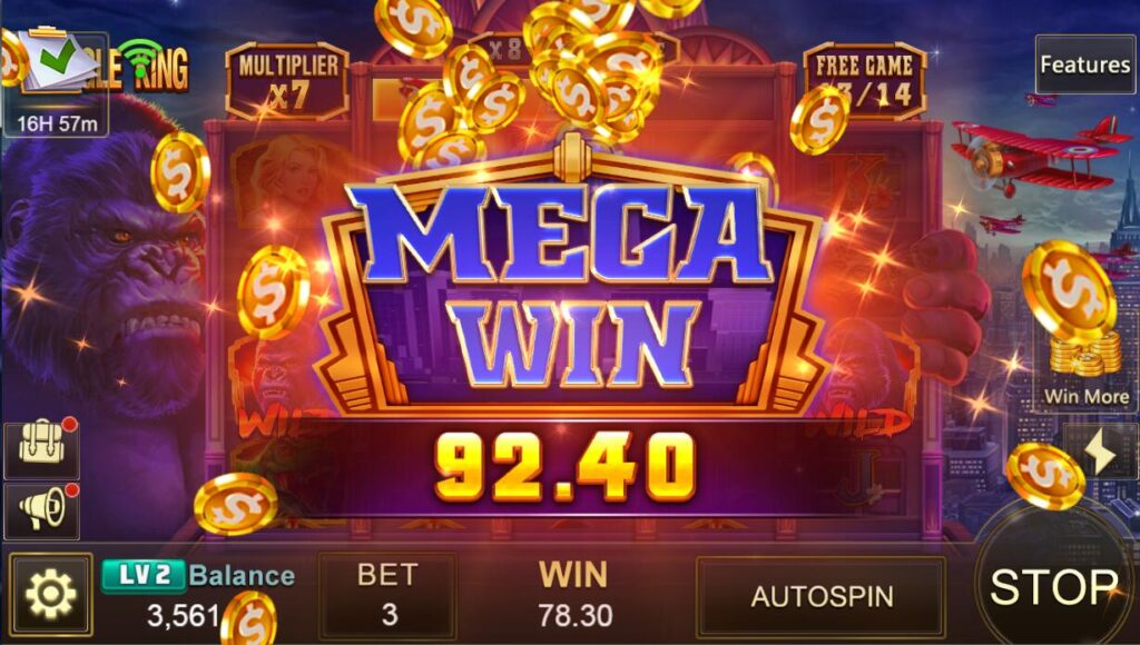 Unlock a thrilling adventure with 3 Scatters in Jungle King, each inviting players into a world of free spins. Join King Kong in 8 intense free games, where downing airplanes unveils rich rewards and coveted airplane symbols. Gather 3 symbols to boost your multiplier and step into another exhilarating round of free games. Every win multiplies, turning each spin into a treasure trove of opportunities. The excitement is heightened as the initial and subsequent multipliers intricately weave with the number of Scatters, turning every play into an electrifying experience.